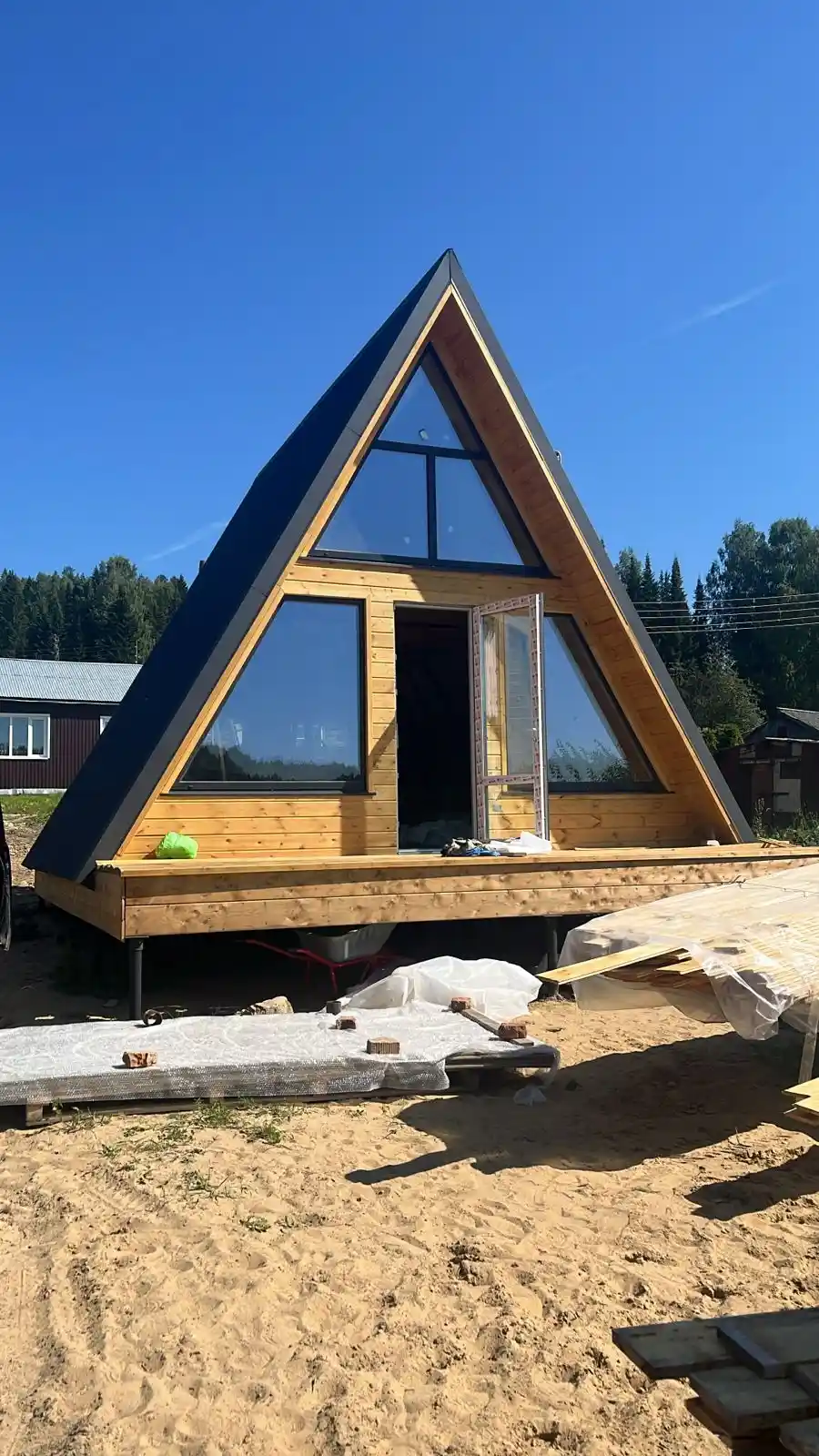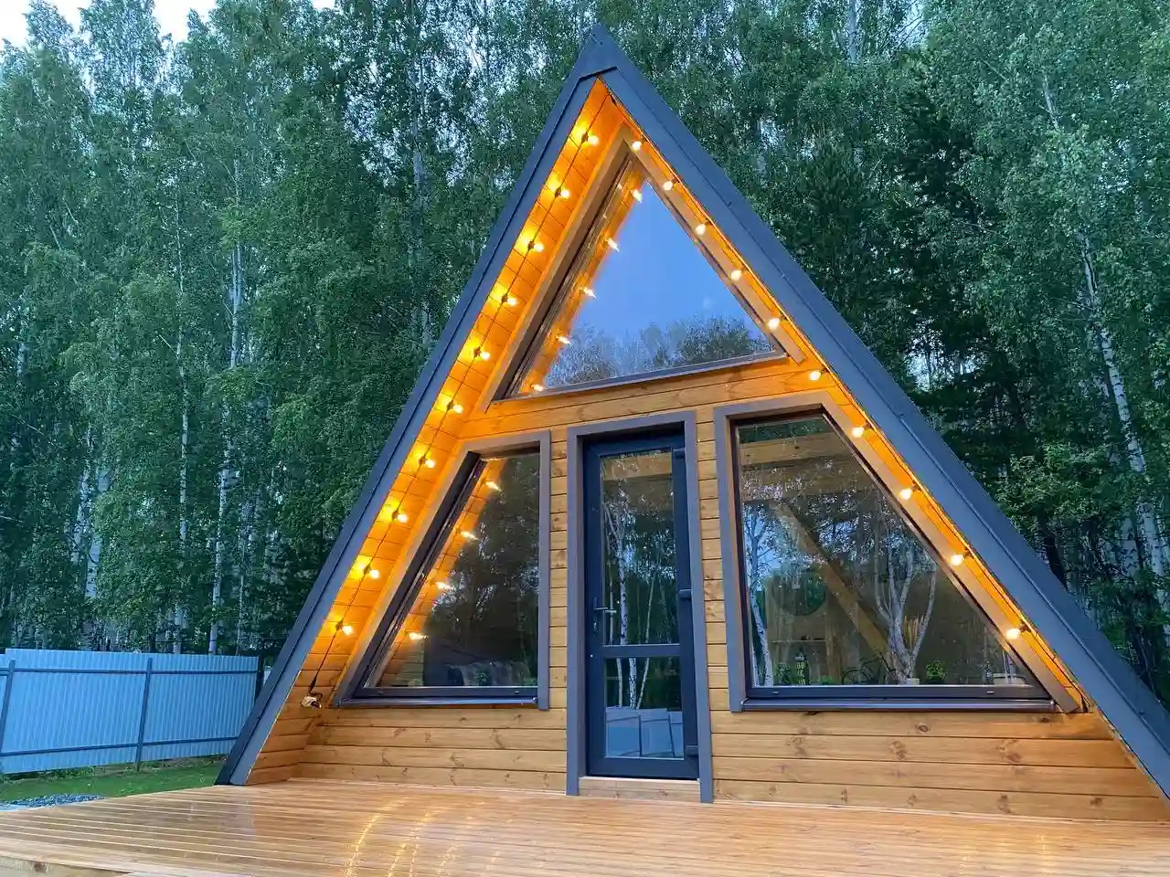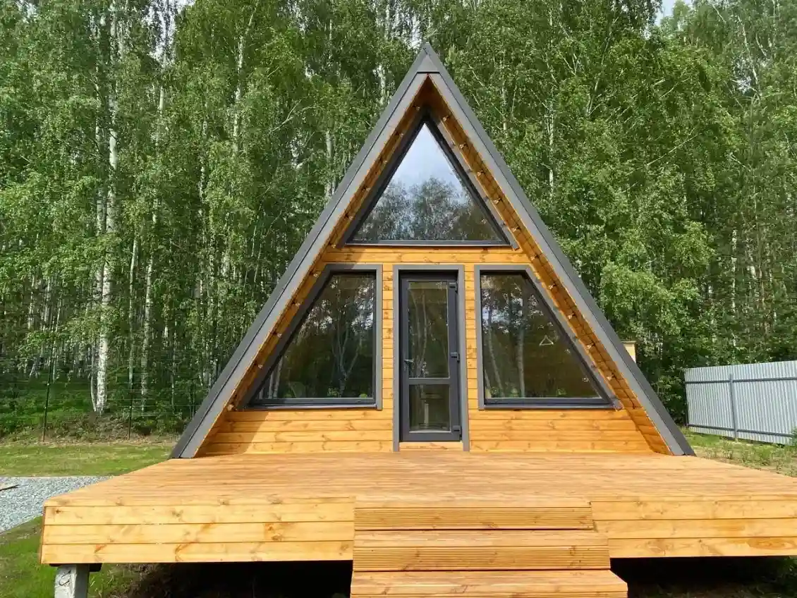 Внешняя отделка А-фрейм 6х8 включает в себя максимальную защиту каркаса от внешних воздействий окружающей среды.