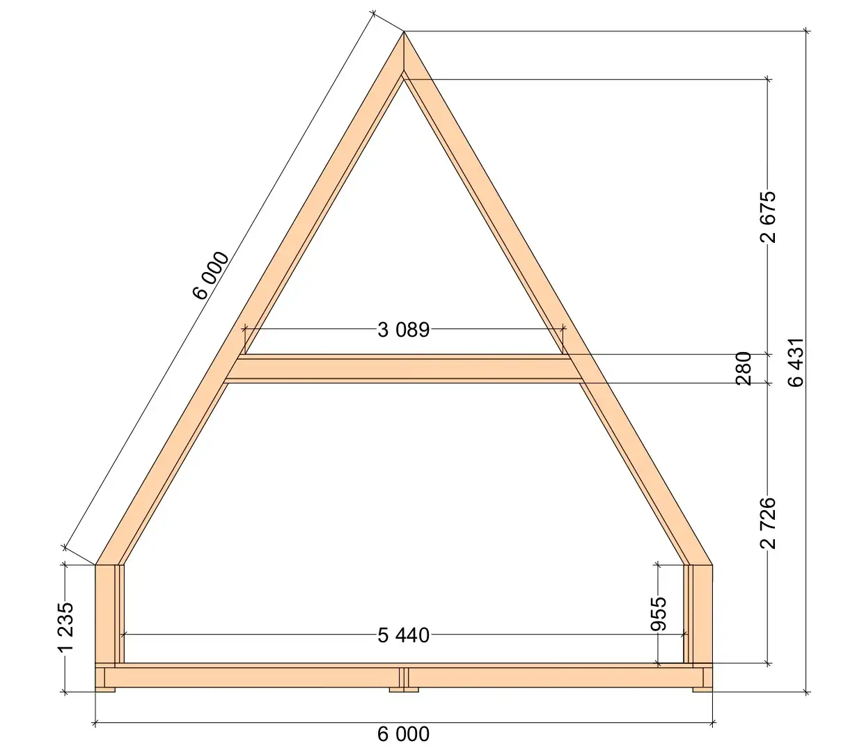 Силовой каркас А-фрейм 6х8 АТТИК
